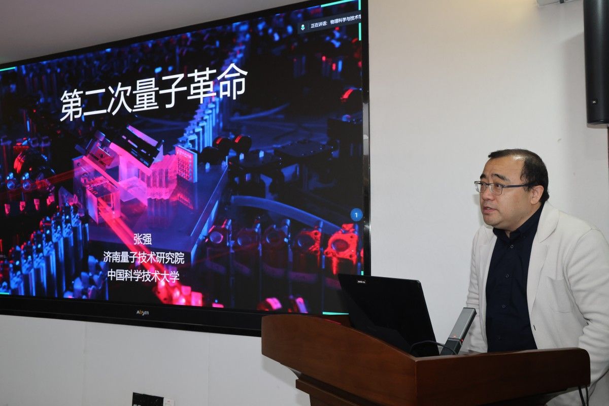 刘春华首先致辞,对与会嘉宾表示热烈欢迎,介绍了学校在师资队伍、学科建设、科学研究等方面的情况。刘春华指出,量子科技是国家战略科技力量的重要组成部分,高等教育是教育、科技、人才的集中交汇点,学校集聚优势资源成立山东省量子未来技术学院,是服务国家战略需求、促进区域经济发展、推动产学研用深度融合的重要举措,学校将高标准谋划、高质量推进,为山东省和国家量子科技发展做出应有贡献。
