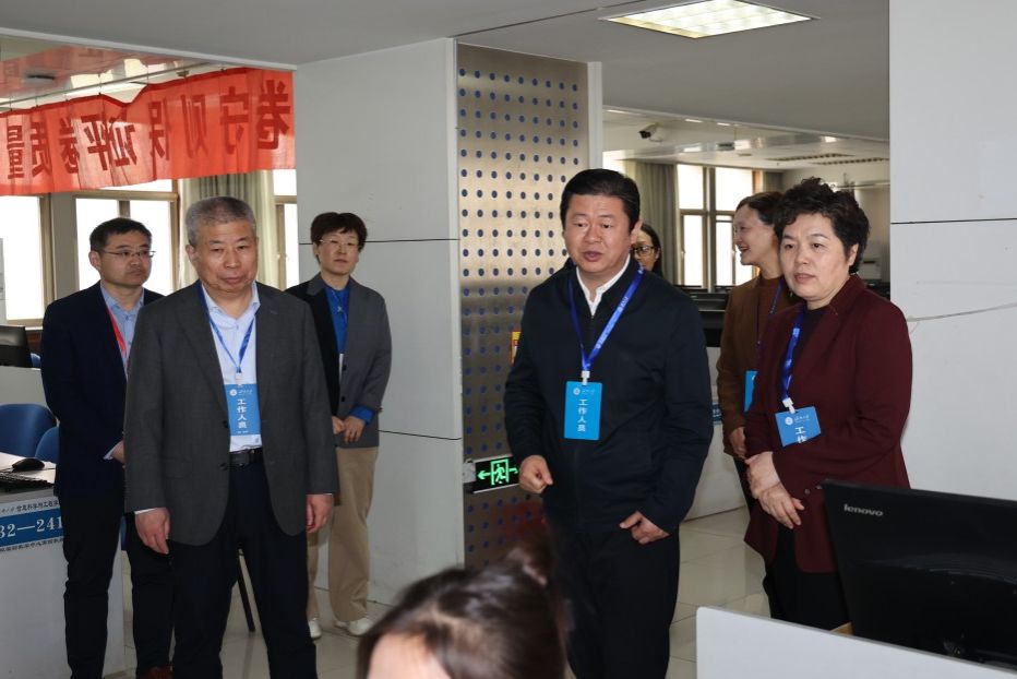 在专升本评卷现场,张志刚一行对机房硬件条件、技术支持、质量管控和后勤保障等方面进行逐一巡查,仔细询问评卷工作筹备组织、工作进展及评卷质量监督等内容。