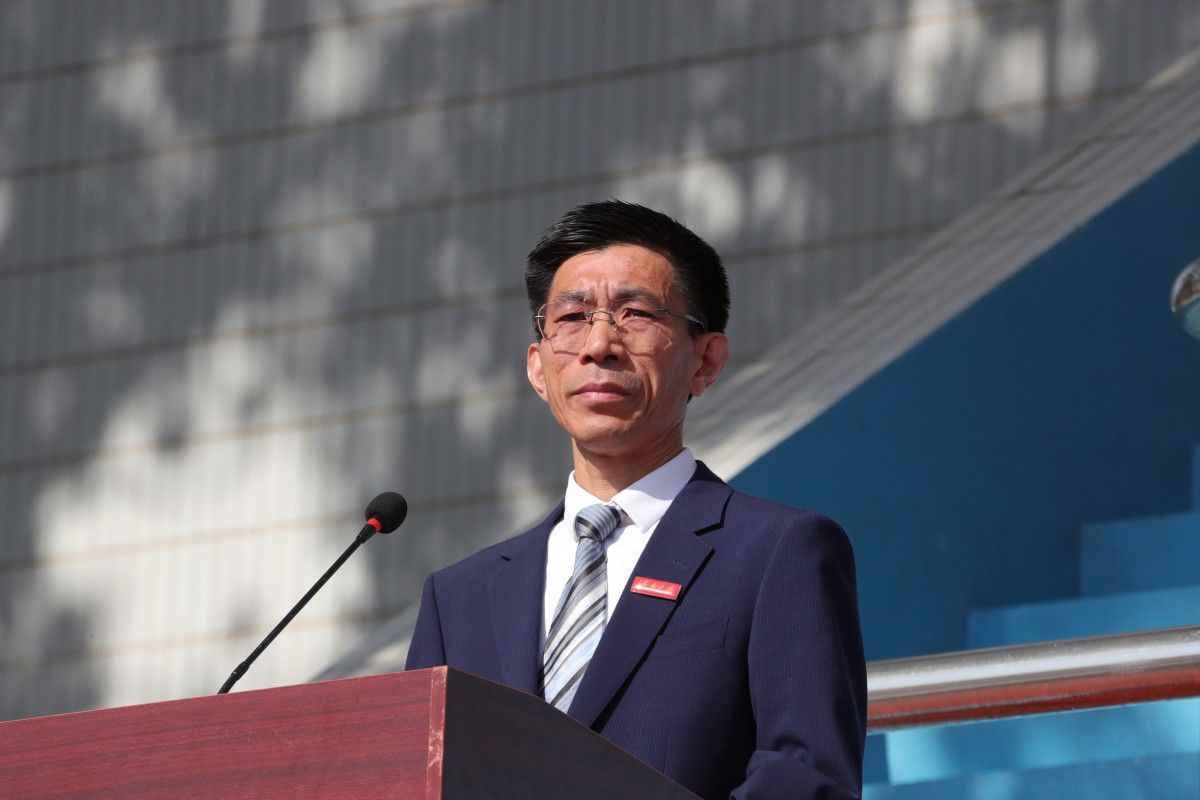 校长刘宗明致开幕词。他首先代表学校对运动会的胜利召开表示热烈的祝贺!向为运动会筹备付出辛勤劳动的师生员工表示衷心的感谢!向参加运动会的全体运动员、教练员和裁判员表示亲切的问候!特别向前来参会的各地校友表示诚挚的欢迎!