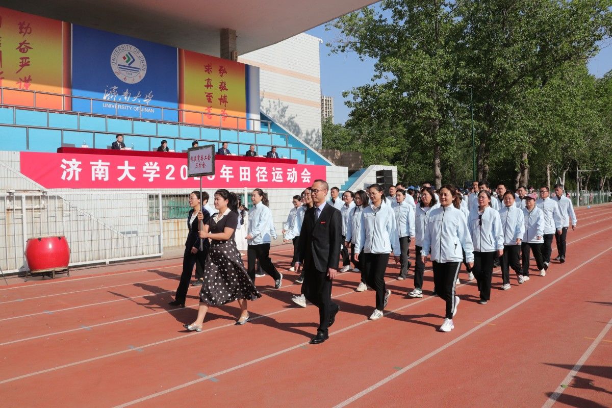 上午8时,伴随着昂扬的运动员进行曲,各代表队入场。他们步履铿锵,身着统一的服装,以积极向上的精神风貌依次通过主席台,展现了济大师生团结奋进的风采。