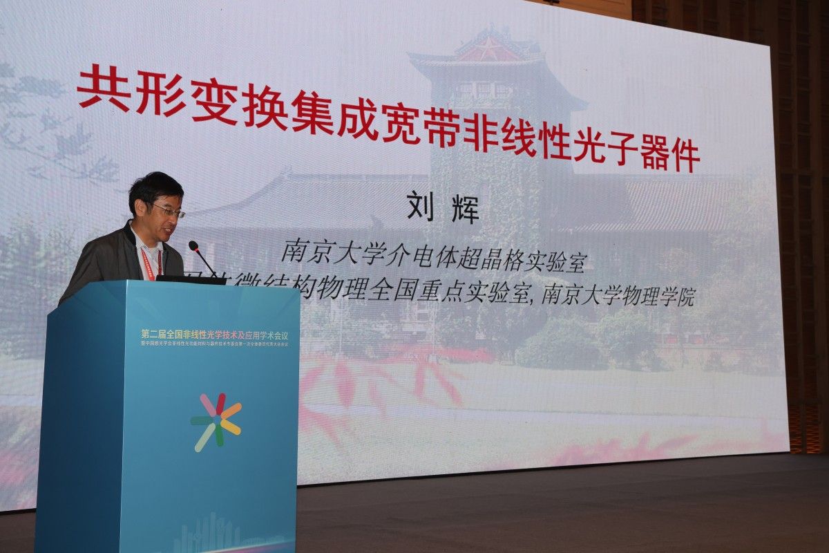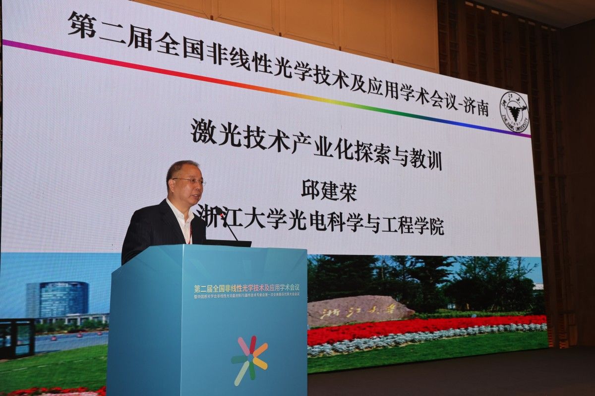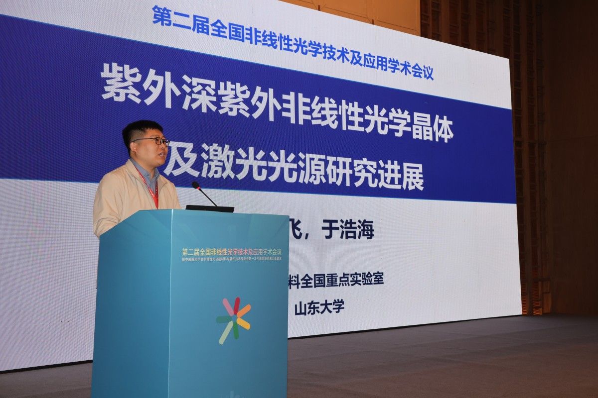 开幕式结束后,浙江大学邱建荣教授、北京师范大学陈玲教授、南京大学刘辉教授、永利yl23411官网王霞教授、山东大学于浩海教授依次作了题为“超快激光制造产业化探索与教训”“非线性光学化合物的结构设计及性能提升”“共形变换光学结构中的宽带四波混频纠缠光子对”“微纳光子结构的设计制备及光场调控研究”“紫外-深紫外非线性光学晶体及激光光源研究进展”的大会报告。