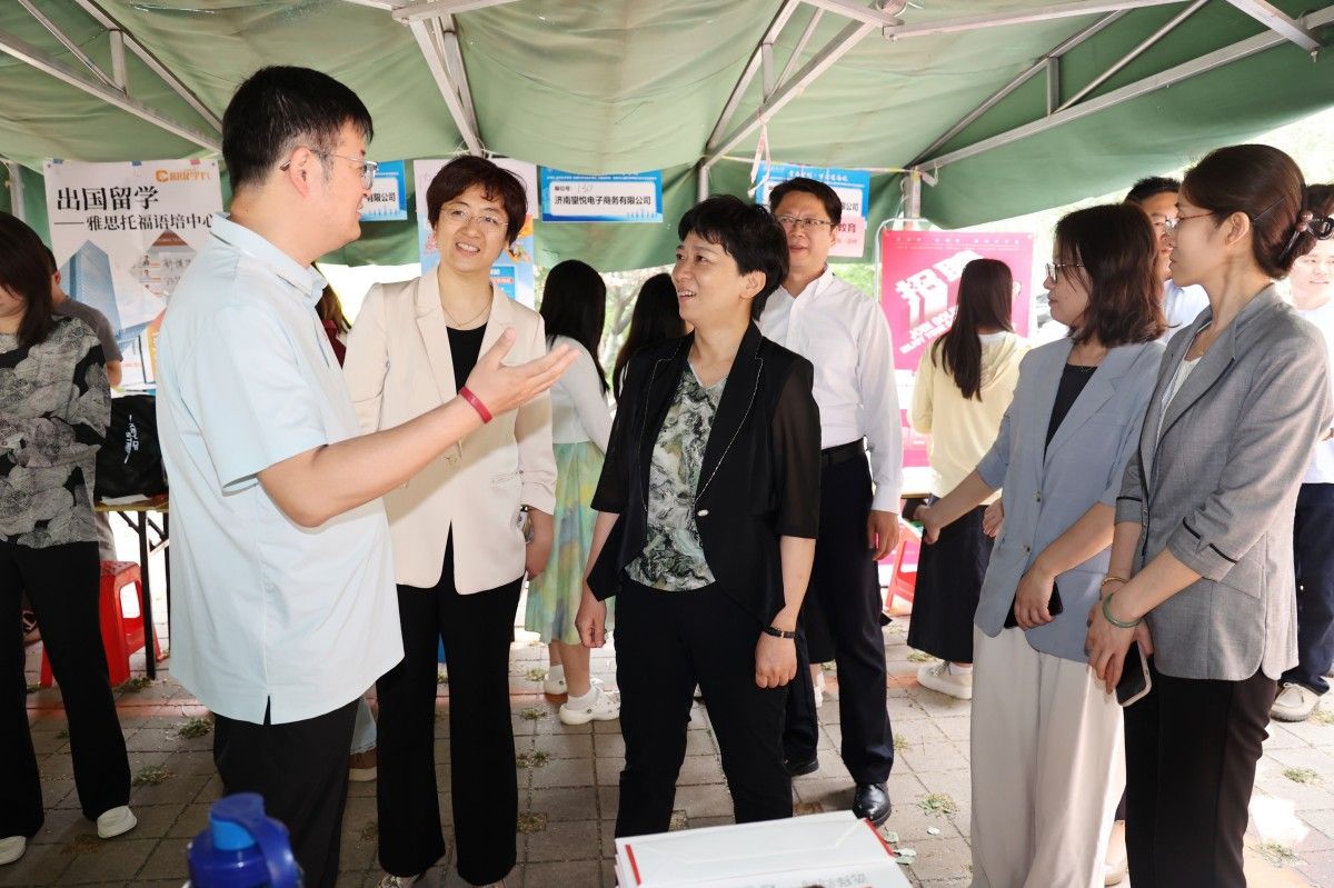 为进一步贯彻落实党中央、国务院关于做好高校毕业生就业工作的决策部署,抢抓毕业生求职关键期,为广大毕业生提供广阔的就业平台,有效帮助其更高质量就业,5月15日,文学院、数学科学学院、物理科学与技术学院、外国语学院、教育与心理科学学院联合举办“‘职’聚五院 共赢未来”——2025届毕业生“青鸟计划”专场招聘会,学校党委副书记商华到现场与参会单位和学生交流。党委宣传部、党委学生工作部(处)、党委保卫部 安全管理处、团委(创新创业学院)、文学院、数学科学学院、物理科学与技术学院、外国语学院、教育与心理科学学院等相关负责人参加活动。
