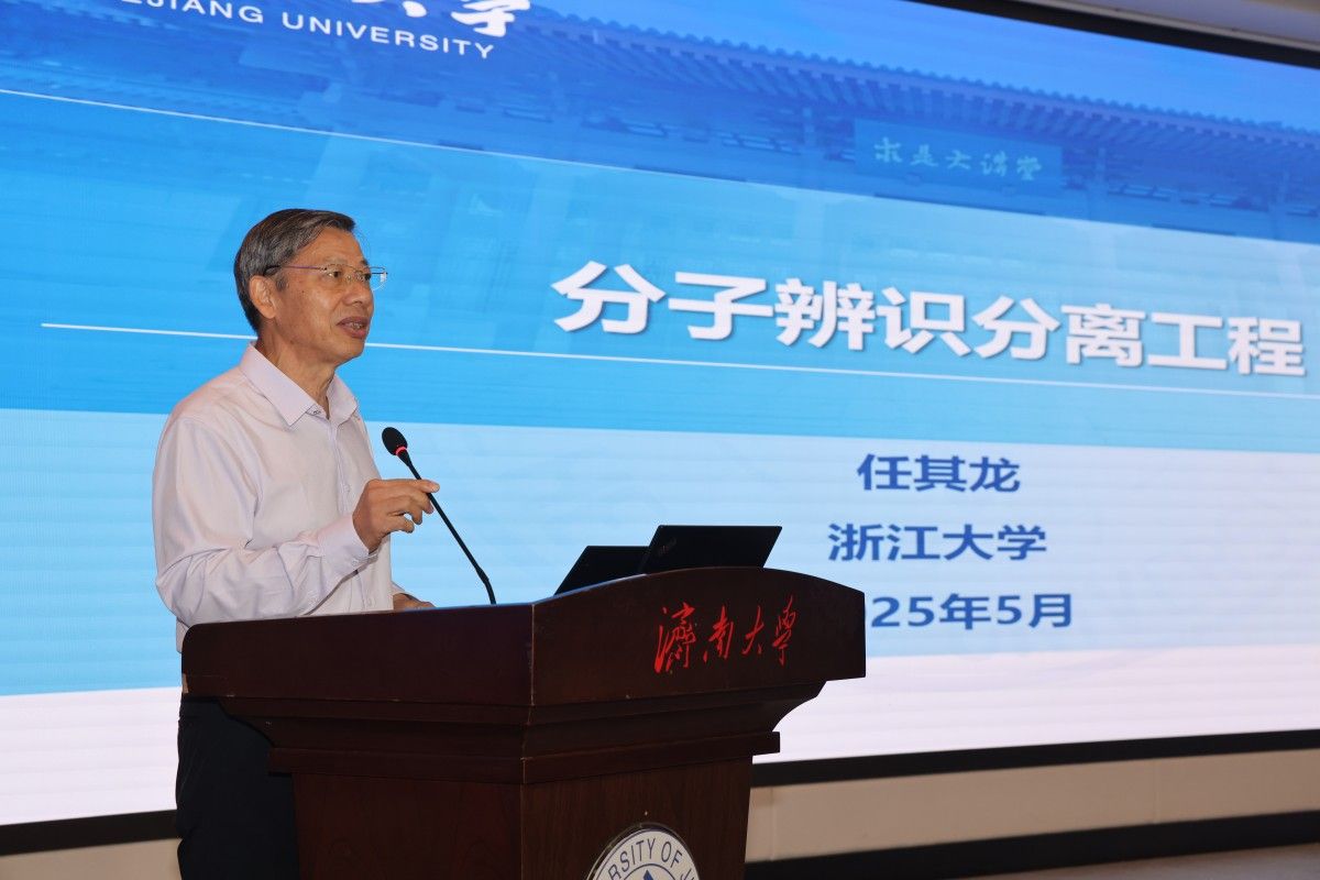 本次研讨会上,任其龙院士作了题为《分子辨识分离工程》的特邀报告。任其龙院士系统介绍了其团队在化工分离技术领域取得的重要突破,重点阐述了分子辨识分离工程平台技术的创新性研究成果。报告详细展示了该技术在解决化工分离难题方面的显著优势,特别是在处理组分极复杂、分子极相似体系时的独特效果。通过这一技术,团队已成功实现天然维生素E、24-去氢胆固醇等十余种高附加值化工医药产品的高效绿色制造,为相关产业发展提供了关键技术支撑。任其龙院士的报告既有理论深度又具实践指导意义,其创新性的研究思路和丰硕的工程应用成果,为现场师生带来了深刻启发。