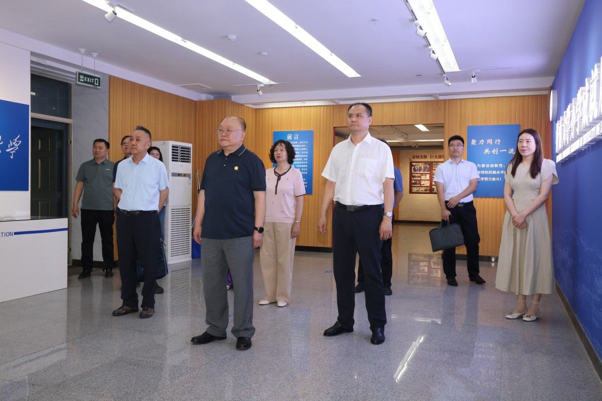 座谈会前,张庆国陪同客人参观了学校办学成就展。