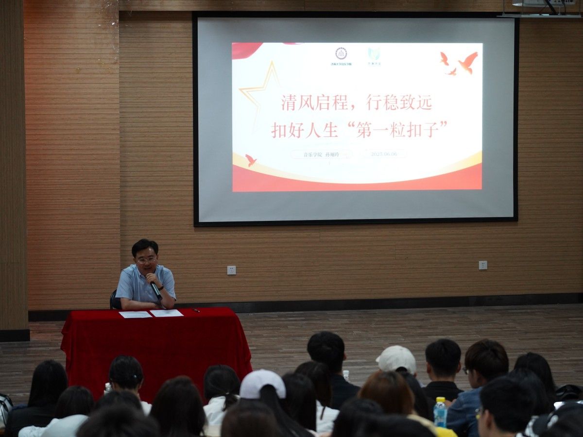 “青廉课堂”是助力青年学生增强廉洁意识、明晰行为边界、培育廉洁价值观、提升拒腐防变能力、弘扬清风正气的有效途径。土木建筑学院把“青廉课堂”与“鲁班学堂”相结合,邀请校友代表为毕业生讲授廉洁思政课;音乐学院为全体毕业生讲授《清风启程行稳致远 扣好人生工作第一粒扣子》思政课。各学院党委书记、分管学生工作的党委副书记、毕业班辅导员等为毕业生党员讲授“青廉课堂”专题党课50余场次,开展深入贯彻中央八项规定精神学习教育,把毕业生教育与党纪、党性、廉洁教育相结合,教育青年学生从思想根源上筑牢拒腐防变坚固防线,切实增强毕业生的政治意识、规矩意识和廉洁意识。
