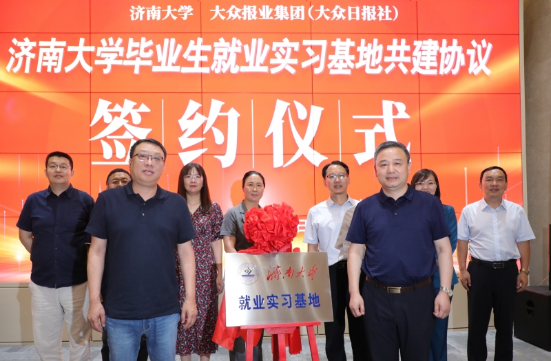 签约仪式上,党委学生工作部部长刘芝代表学校与齐鲁晚报副总编辑王健签订毕业生就业实习基地协议,查玉喜、蓝海为“永利yl23411官网就业实习基地”揭牌。