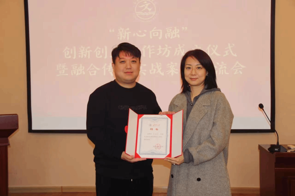成立仪式上,潘颖为栾鸿尧颁发了“创新创业导师”聘书。仪式结束后,栾鸿尧结合真实的典型案例分享了融媒体整合营销的经验和体会,并和同学们进行了充分的交流互动。