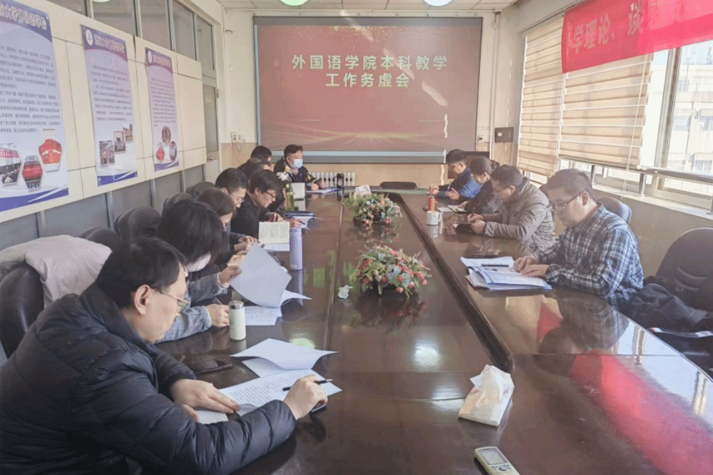 2月27日下午,外国语学院召开本科教学工作务虚会,研讨谋划新学期工作。学院党政领导班子成员、各系部主任和教管办主任参加会议,会议由学院副院长王勇主持。