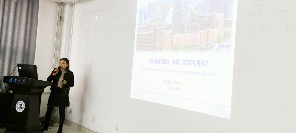 许林利助理教授的报告题目是“新型金属石墨炔:合成、表征和应用研究”,她着重介绍其课题组近期在新型金属石墨炔设计合成以及其在催化、光电等领域应用研究取得的研究成果。