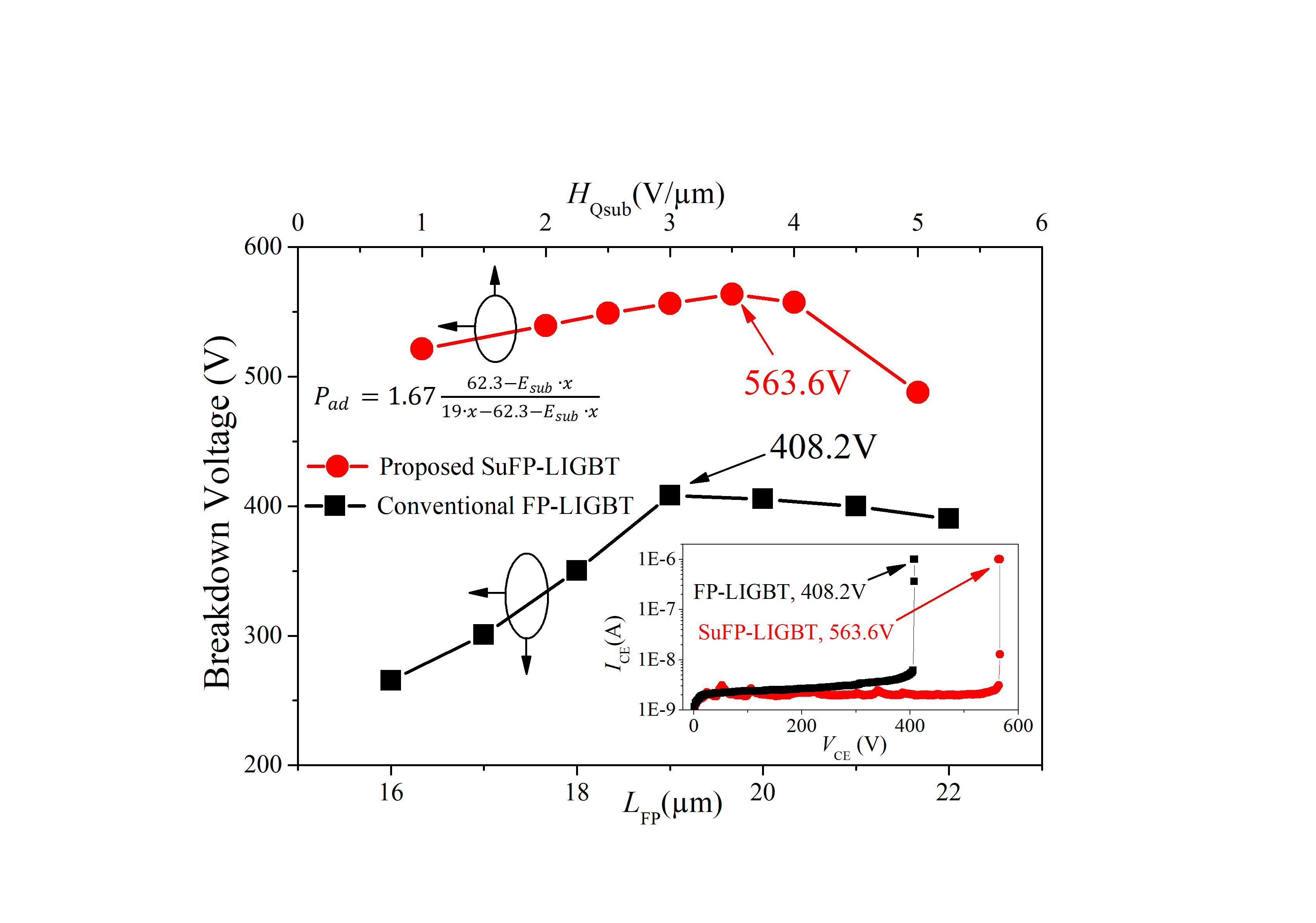 信息科学与工程学院集成电路团队提出一种超级场板技术,大幅提升了横向绝缘栅双极型晶体管(LIGBT)的耐压能力,使其接近了理论极限。相关成果以“A 500V Super Field Plate LIGBT with Excellent Voltage Blocking Capability”为题发表于集成电路领域顶级期刊IEEE Electron Device Letters,论文第一单位为永利yl23411官网信息科学与工程学院,张春伟老师为第一作者,李阳老师为通讯作者。