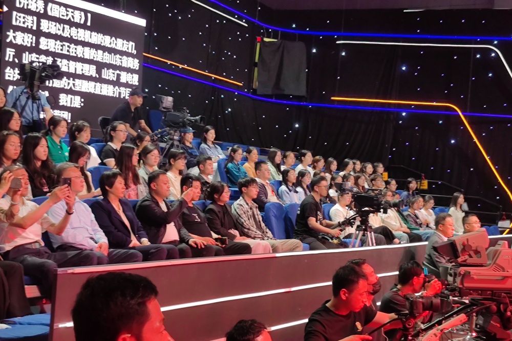 本次实习实践活动涵盖了节目现场直播、主持采访、摄像调度、播出技术等多个环节。实习实践地点位于山东省广播电视台800平米演播室“好品山东”节目的演播大厅。现场节目编导向同学们介绍了直播现场的各种专业影像设备以及场地区域划分,讲解了现场编导和工作人员的分工职责。等待直播节目开始前,摄像技术老师耐心地解答学生们的疑问,向学生解释在直播中不同机位的调度和分工,介绍在不同节目中摄影机位的选取与安排,同时展示了专业摄像机的整体构造和简单使用方法。学生们积极互动,虚心请教,利用好本次实习实践机会丰富专业认知、增加实践阅历、初步了解电视节目的制播过程。学生们在省台资深编导的指导下,积极参与节目的录制、现场互动与交流,在直播过程前后,学生们与节目制作人员交流心得,身临其境、零距离见习了广播电视节目直播全过程。