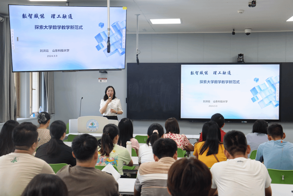 为进一步弘扬教育家精神、强化师德师风和新时代高素质专业化教师队伍建设,提升学院教师教学能力和数字素养,近日,数学科学学院邀请山东省教学名师、山东省示范性基层教学组织负责人、山东科技大学刘洪霞教授作题为“数智赋能 理工融通——探索大学数学教学新范式”的学术报告。学院党委书记崔英静出席报告会,学院各系部教师参加报告会,会议由学院副院长王洪凯主持。