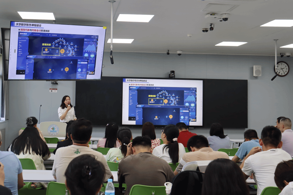 报告会上,刘洪霞通过“AI数字人课堂”等实例分析,阐述了人工智能如何与混合式教学深度融合、如何为传统教学模式带来革新,同时展示了人工智能技术在提升教学效率、个性化学习等方面的巨大潜力,为达成全面育人目标提供了切实可行的策略。报告聚焦大学数学课程群知识图谱的构建,详细解析了知识图谱在梳理课程体系、促进知识融合中的重要作用。为推进数智赋能教学,刘洪霞针对大学数学教学的新范式提出了若干前沿探索。