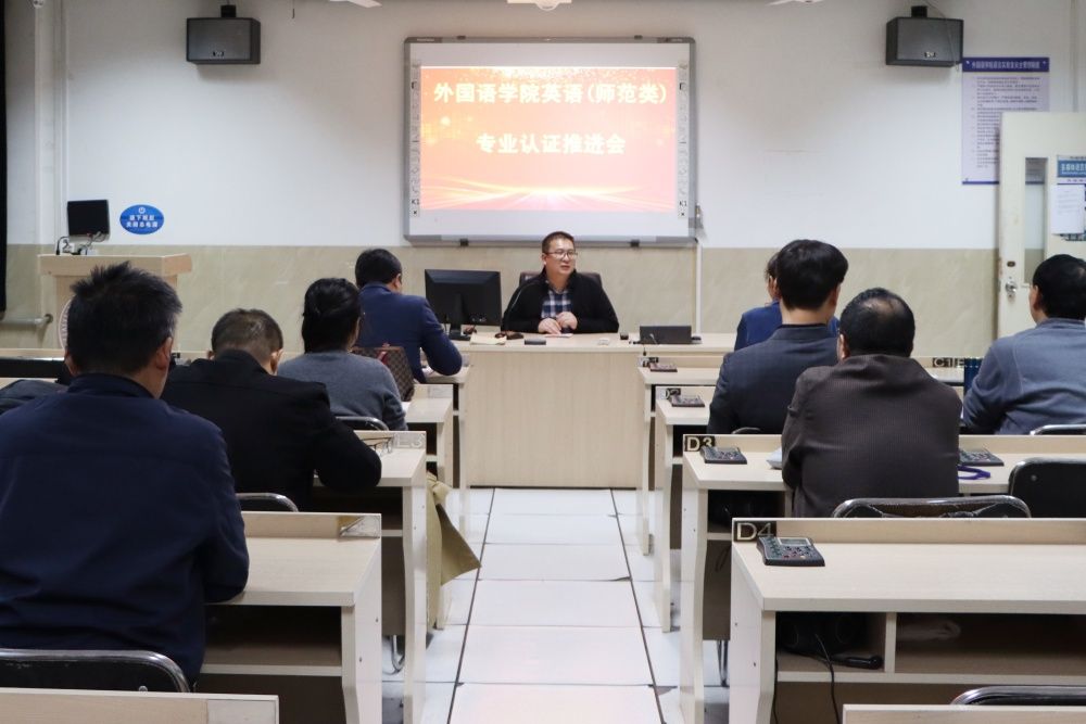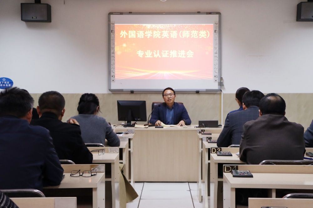 10月29日下午,外国语学院在第一教学楼第二语音室召开英语(师范类)专业认证推进会。学院领导班子成员出席会议,英语系全体教师参加。会议由外国语学院副院长王勇主持。