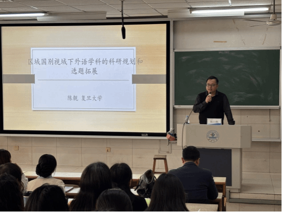 4月15日下午,外国语学院举办了题为“区域国别学视域下外语学科的科研拓展及学术发表”的学术讲座。本次讲座邀请复旦大学外国语学院副院长、国家级重大人才工程青年学者、中外语言文化比较学会区域文化研究专业委员会会长、国际易卜生委员会委员、高校国别和区域研究人才培养院系联盟副理事长、《复旦外国语言文学论丛》(CSSCI)副主编陈靓教授主讲。外国语学院院长宋庆伟主持讲座,学院教师、在读研究生以及本科生参加了本次讲座。