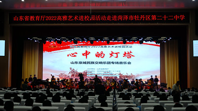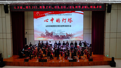 民族管弦乐作品《心中的灯塔》由音乐理论系王晓锋老师创作,以歌曲《跟着共产党走》为素材,诗篇般描述了历史过往,展现了在党的领导下,中国人民奋勇前进、不畏艰险的民族气概,表达了“听党话、感党恩、跟党走”的铮铮誓言。由田浩老师改编的《孤勇者》,受到了台下学生们的追捧,大家跟着指挥大声合唱,极大地拉近了中小学生与传统民乐的距离。本次演出受到大众网、牡丹融媒等多家媒体报道。