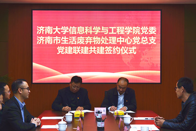 签约仪式上,济南市生活废弃物处理中心党总支书记、主任宫本水,信息科学与工程学院党委书记李超、院长陈贞翔分别介绍双方党建与业务工作情况;宫本水书记与李超书记共同签署了《党建共建联建协议》,边书君副主任、陈贞翔院长共同为“党建联建共建基地”揭牌;双方围绕党建共建协议的目标、内容及举措方面进行了研究商讨,并一致表示要开展多领域、多角度的交流合作,共同推动党建与业务有机结合、协调发展。