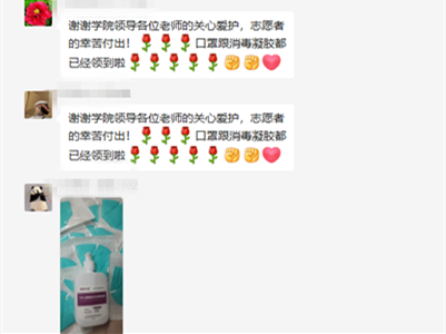 驻守在校内的志愿者们互相支持打气,身处校外的教职工也没有停下抗疫的脚步,他们时刻牵挂着在抗疫一线的同事和学生,送上悉心关爱,积极筹措物资,协调配合线上工作,守护好“大后方”,做好坚强后盾和保障工作。心手相牵,共克时艰!