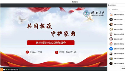 当前学校的疫情防控处于最吃紧的关键阶段,为了切实有效贯彻落实党和国家关于疫情防控的政策以及学校常态化防控、应急性处置的要求,做好疫情防控期间学生的教育、管理、服务等各项工作,解决学生实际问题、解答学生实际关切,党委学生工作部(处)起草发布《“共同抗疫 守护家园”疫情防控线上主题班会工作方案》;各学院结合当前实际,围绕弘扬抗疫精神、疫情防控形势、遵守学校防控规定、做好个人防护、安全隐患排查、思想教育引导、心理健康疏导、后勤服务保障等方面召开主题班会,让疫情防控“有力度”、暖心服务“有温度”、思政教育“有效度”。