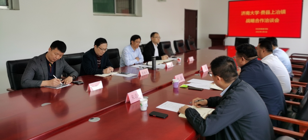 学院党委书记孟德洋对李剑一行的到来表示欢迎,并简要介绍了学院建设发展现状、社会服务工作开展情况。他指出,服务地方经济社会发展是高校的重要职能,更是高校的责任和担当。学院高度重视社会服务工作,集中学科特色和专业优势,不断推动学院高质量内涵式发展,同时以更高标准助力地方文旅产业融合发展,为地方经济建设提供更加精准优质的服务。近年来,学院扎实开展校政企合作,立足济南,服务山东,服务社会的能力不断提升,学院知名度不断提高。学校第四次党代会也明确提出要“更好的依托行业,服务行业,发挥专业优势,为地方经济社会高质量发展提供人才和智力支持”。希望和费县上冶镇充分发挥资源优势,促进政产学研深度融合,推动双方在人才培养、科技创新、文旅产业发展等方面协同发展,开展多层次、多领域、全方位合作,共同助推上冶镇经济社会高质量发展。