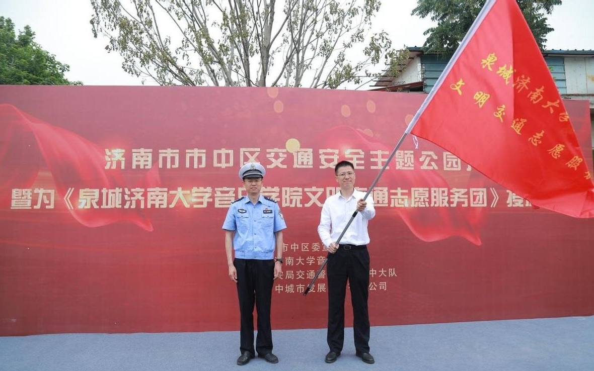 为弘扬志愿服务精神,助力济南城市文明交通工作开展,进一步提升学院学生交通安全意识,5月21日,音乐学院在校团委指导下,受邀参加济南市中交警大队“永利yl23411官网音乐学院泉城文明交通志愿服务团”授旗仪式,仪式在市中区青龙山南街锦雲金街举行。济南市交警支队宣传处处长尹治国、市中区交警大队长徐军,音乐学院相关单位负责人及学生志愿者团队参加活动。