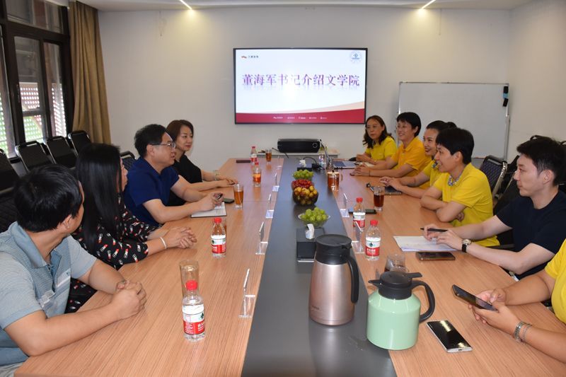 文学院党委书记董海军对集团的信任与支持表示感谢,他向企业介绍了学院发展现状、学科特色优势、人才培养、师资队伍、校友工作和社会服务等情况;学院党委副书记、副院长潘颖介绍了学院学团工作、就业实习、学生科技创新、社会实践等情况,双方重点就学院人才培养、校企合作、毕业生实习就业、校友会筹备等相关事宜进行了深入交流。