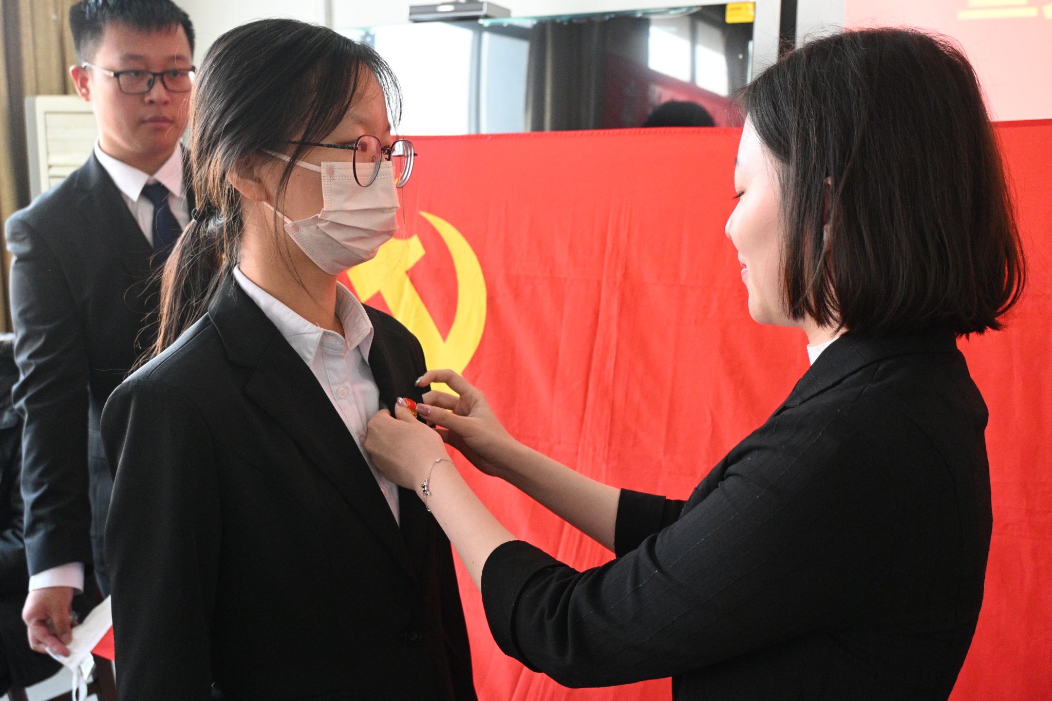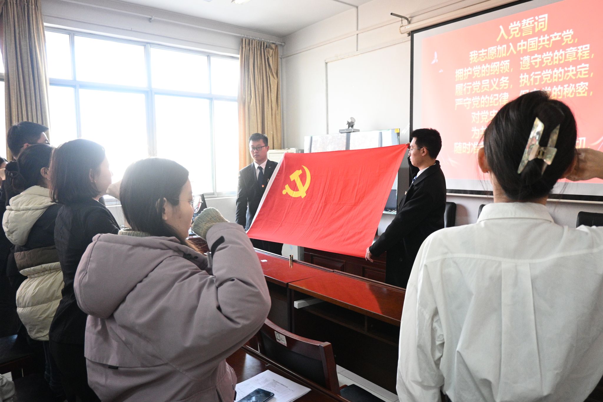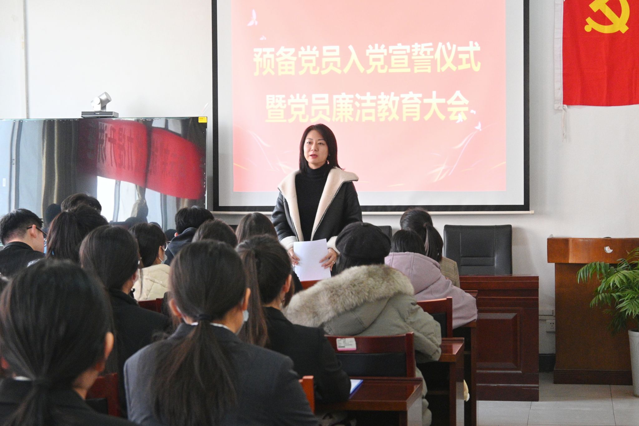潘颖代表学院党委向新党员同志加入党组织表示热烈祝贺,并提出三点希望,一是希望同学们将入党日期当作自己的第二个生日铭记在心,在组织上入党的同时,思想、行动上也要入党;二是希望同学们履行党员义务,践行入党誓词,充分发挥共产党员的先锋模范作用;三是希望同学们厚植文化自信,努力践行社会主义核心价值观,将个人发展符合国家社会整体需求,让“小我”自觉融入“大我”,让个人与时代共振。