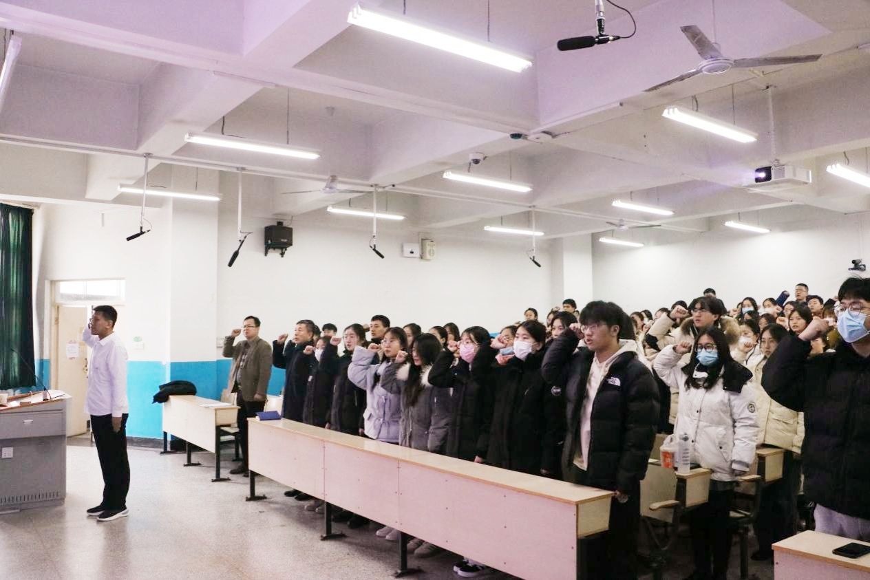 学院党委副书记袁海占向全体新党员表示祝贺,并提出几点希望和要求:一是加强理论学习,坚定理想信念;二是强化党员意识,为党旗增辉添彩;三是勇于担当,扛起新时代赋予的历史使命;四是做合格党员,发挥先锋模范作用。他强调,不忘初心跟党走是青年的政治选择,也是青年的人生航向,希望大家在今后的学习、工作和生活中以实际行动来践行自己的誓言,敢为复兴栋梁,争做强国先锋,践行党旗下的庄严承诺,切实担负起党和人民赋予的伟大使命,成长为堪当民族重任的时代新人!