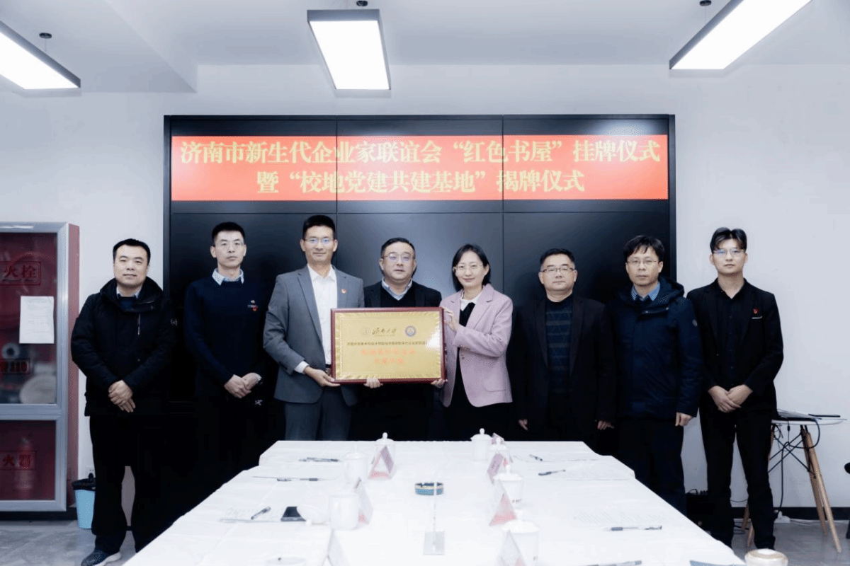 为积极探索基层党建工作新途径,实现党组织优势互补,探索校企党建共建新模式,努力构建“资源共享、优势互补、互相促进、共同提高”的党建工作新格局。美术与设计学院与济南市新生代企业家联谊会开展“党建共建、发挥合力、共赢未来”的党建共建活动。12月22日,美术与设计学院与济南市新生代企业家联谊会举办“校地党建基地共建”签约揭牌仪式。学院党委书记陈春锋,副书记、副院长何贵亮,副院长赵忠超和学办主任王鹏飞出席仪式,济南市工商联协会党委办公室主任靳峰,济南市新生代企业家联谊会党支部书记班春雷和联谊会支部委员参加活动。