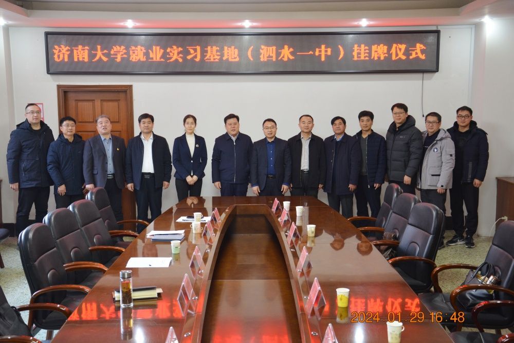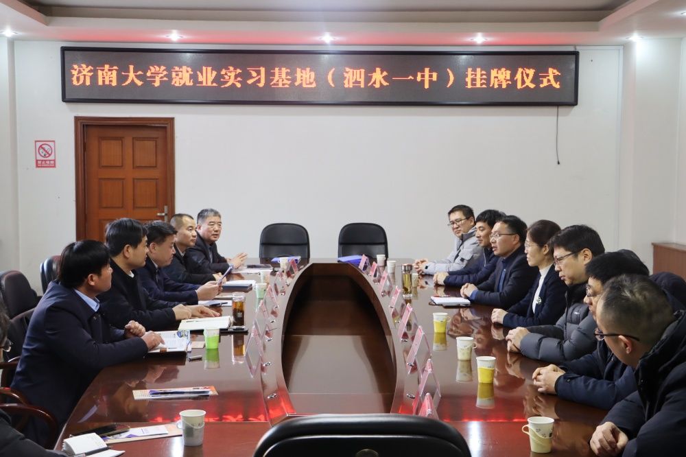 外国语学院一行来到泗水县第一中学举行合作协议签约暨授牌仪式。泗水县政协主席程广利,泗水县县长张全庆,泗水县教体局党组书记、局长李庆泉,泗水一中党委书记蔡秀喜、校长刘延标,教师代表参加活动。活动由泗水县县长张全庆主持。