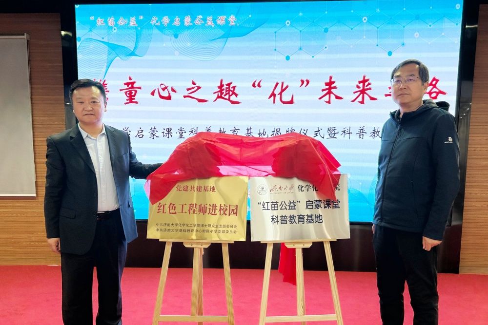 化学启蒙课堂科普教育基地揭牌仪式暨科普教育课程的开展,是化学化工学院与基础教育中心以科学启蒙和兴趣培养为目的,不断聚焦附属学校内涵发展,打造具有大学特质的、附属学校特有的贯通式教育新模式,进一步促进高等教育与基础教育相衔接,努力做好教育“双减”中科学教育加法,积极探索培育具备科学家潜质、愿意献身科学研究事业的青少年群体新思路,为打造大中小学科学教育体系提供济大范式。