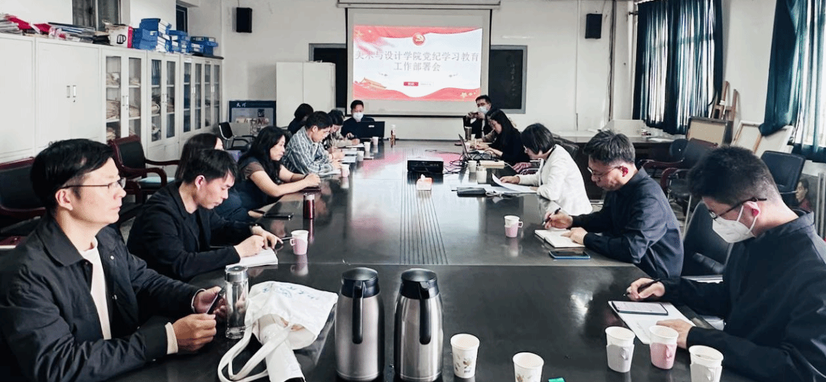 4月16日下午,美术与设计学院召开党纪学习教育工作部署会,传达学习了习近平总书记关于党纪学习教育的重要讲话和重要指示精神并部署党纪学习教育工作。会议由学院党委书记陈春锋主持,学院领导班子、各支部书记、部分教师代表参会。