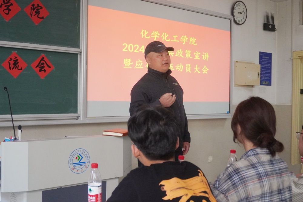 为贯彻落实国家征兵政策,扩大征兵政策宣传的影响力和辐射面,进一步鼓励和引导大学生应征入伍,4月16日和18日,化学化工学院组织召开“志存高远砺青春·建功立业强军梦”2024年征兵政策宣讲暨应征入伍动员大会。学校党委武装部人武科科长李英武,学校第4届教导大队退役大学生应化2105刘杰、材料2212颜旭、化学2302卢国琰、环工2304王镇彬担任主讲人,学院学生工作办公室相关负责老师出席此次活动。
