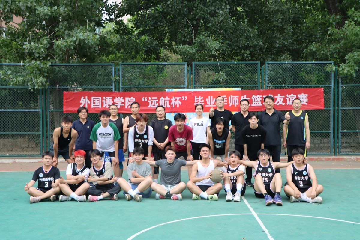 为增进师生友谊,表达对毕业生的美好祝愿,同时弘扬毕业生爱校荣校情怀,5月21日,外国语学院在灯光篮球场举行“远航杯”毕业生篮球友谊赛。外国语学院院长宋庆伟,副书记、副院长郭英,副处级组织员李春海,毕业生辅导员、教工篮球队和本科、研究生毕业班学生篮球队参加了此次活动。