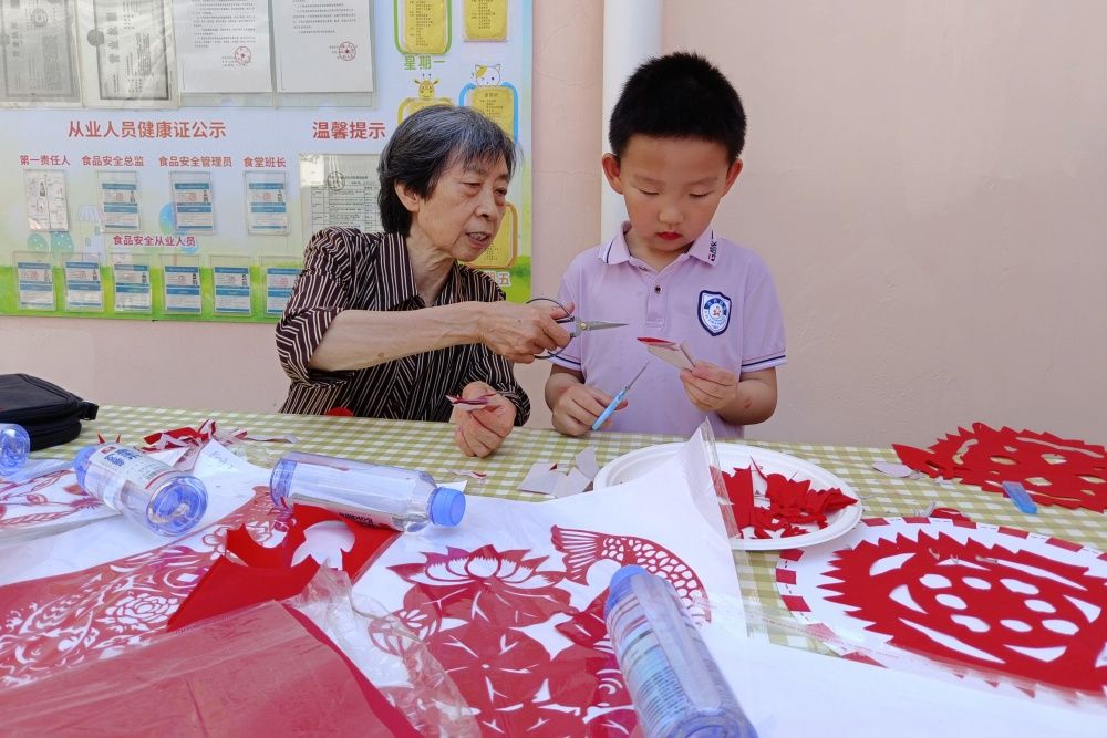 剪纸环节同样精彩绝伦。退休教师们手把手教孩子们如何正确使用剪刀,如何根据模板裁剪出美丽的图案。随着一张张彩纸逐渐变成精美的剪纸作品,孩子们的脸上绽放出灿烂的笑容。他们惊叹于剪纸艺术的奇妙和退休老师们精湛的技艺,纷纷表示要将自己的作品带回家,作为“六一”儿童节最特别的礼物。