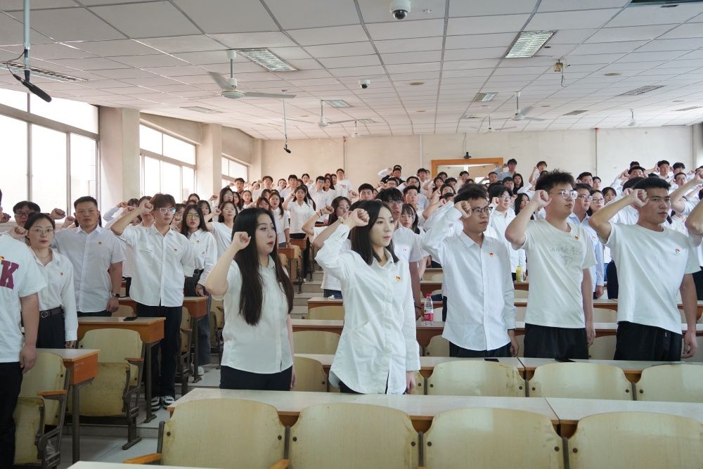 在毕业生党员代表刘斌同志的带领下,全体毕业生党员面向中国共产党党旗,举起右拳,重温入党誓词。全体毕业生党员们在掷地有声的誓词中重温了自己的入党初心,坚定了理想信仰,更坚定了未来为共产主义事业奋斗的决心。