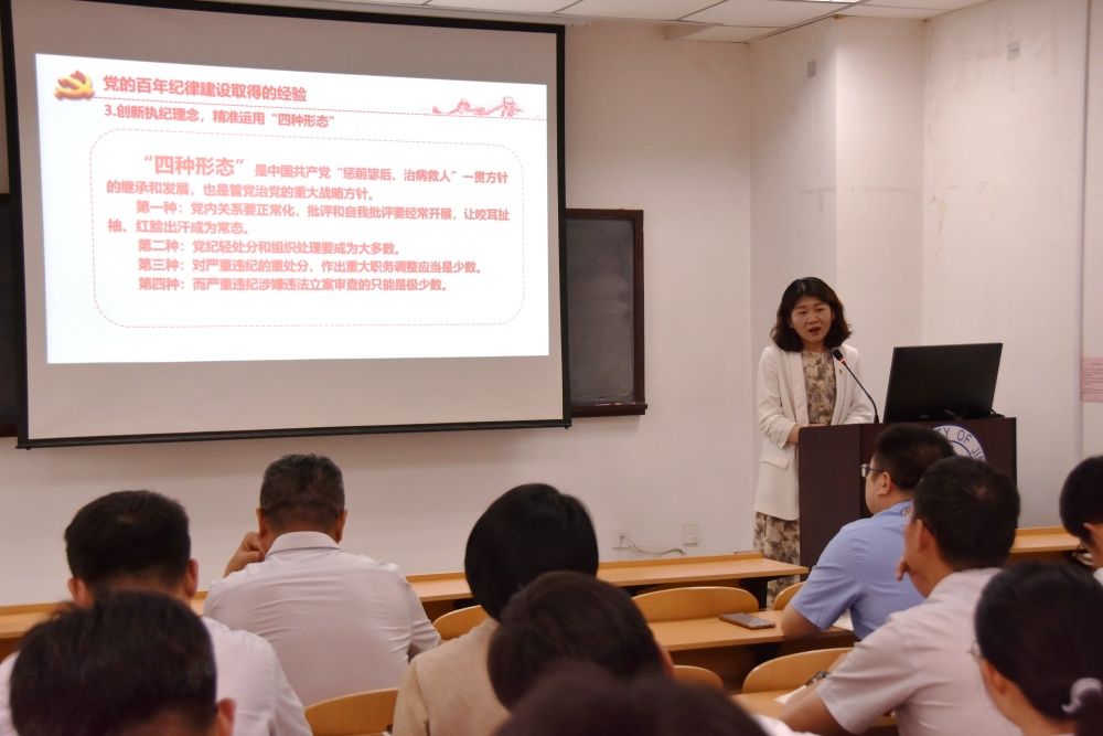 为深入推进落实《中共永利yl23411官网委员会关于开展党纪学习教育的工作方案》,扎实开展党纪学习教育,6月5日下午,学校纪委副书记孙菲菲以《守纪律,讲规矩,做维护党的纪律的忠诚卫士》为题,在第五教学楼306教室为材料科学与工程学院2024学年第一期党员发展对象作“青廉课堂”党纪专题党课,学院党委理论学习中心组成员及部分学生党员代表集体听课,党课由材料科学与工程学院党委书记孙卫星主持。