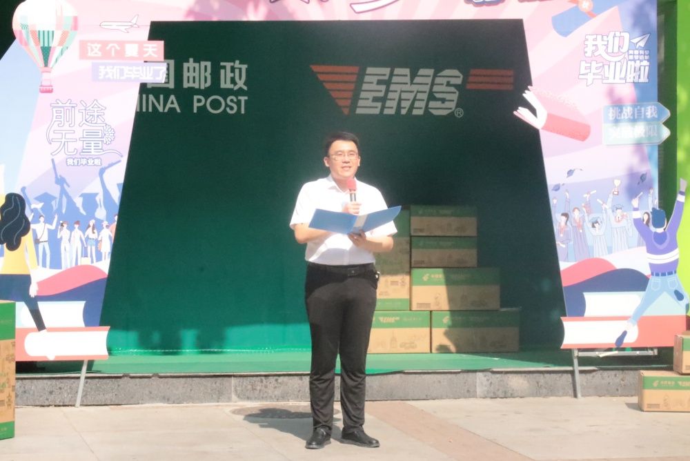 在捐赠仪式上,中国邮政集团有限公司济南市分公司副总经理杨德升向即将毕业的莘莘学子发表深情致辞,期望他们在全新的人生征途上破浪前行、奋勇迈进。
