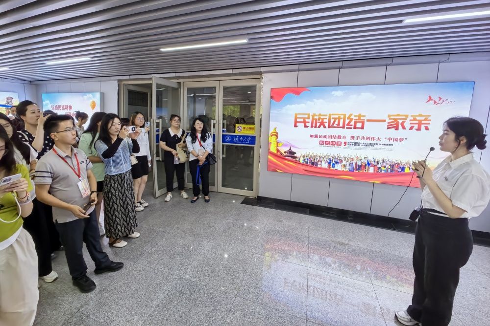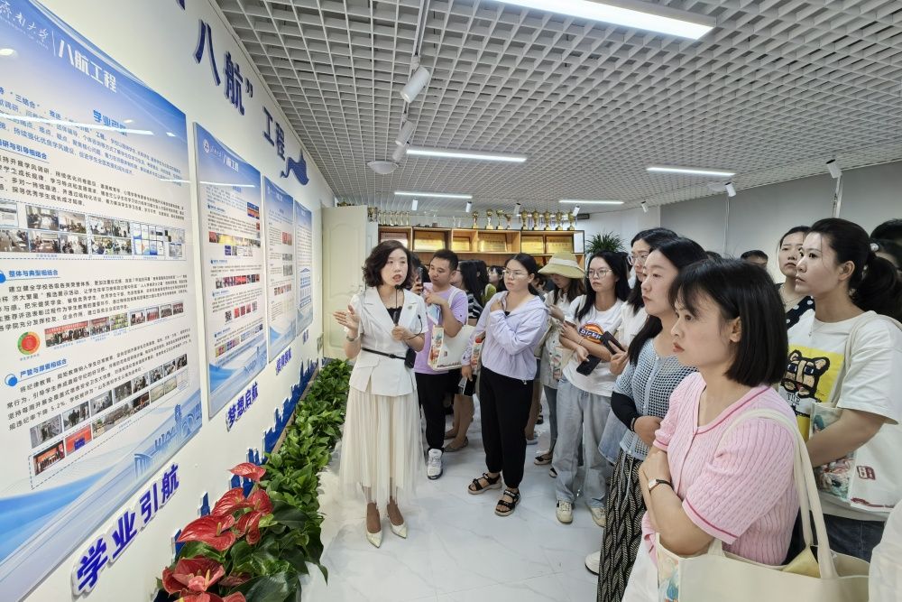 交流活动分实地参观和工作交流两部分。实地参观环节,贵州省高校辅导员骨干一行首先参观了永利yl23411官网办学成就展,了解永利的办学历史与办学成果,随后依次参观学校警务室、少数民族石榴籽工作室、学生工作思政展厅、一站式学生事务服务大厅、人民武装部和创新创业服务中心等学校学生思政工作阵地,沉浸式感受永利在安全教育和自助业务办理的智能化和体验式做法,充分了解学生思政“八航工程”、少数民族学生工作特色做法、人民武装工作与创新创业成果。