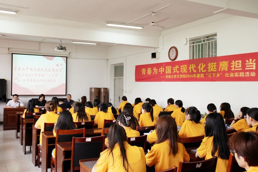 为引导和帮助青年学生在社会课堂中受教育、长才干、作贡献,争做有理想、敢担当、能吃苦、肯奋斗的新时代好青年,7月4日下午,文学院举行了2024年暑期“三下乡”社会实践活动启动仪式,学院党委副书记、副院长潘颖出席仪式。学院指导教师和学生代表参加活动,仪式由学院学办主任兼团委书记敖游主持。