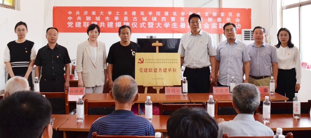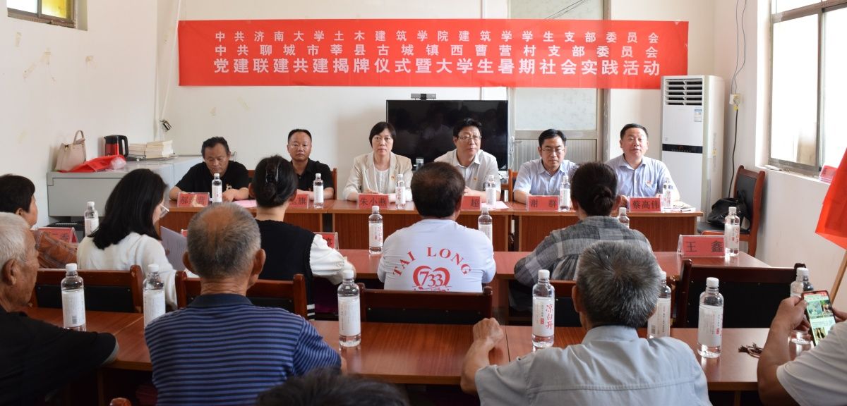 为实现党建工作互促互学、合作提升,通过党建带团建,充分利用双方资源,发挥各自优势,7月11日,土木建筑学院在莘县古城镇西曹营村举行党建联建共建活动并启动大学生暑期社会实践活动。土木建筑学院党委书记李超,学院副书记、院长谢群,学院党委副书记、副院长朱小燕,全体辅导员和师生代表,古城镇曹营联建片区党总支书记宋玉旗,古城镇西曹营村全体党员,永利yl23411官网省派第一书记参加了活动。