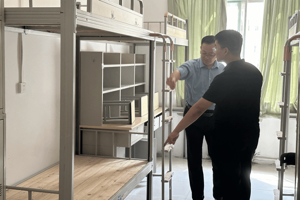 走进公寓楼,老师们仔细查看了地面、桌面、床铺、卫生间等区域卫生清洁情况、安全稳固情况、床贴规范情况、通风采光情况和桌椅配备情况,对学院能解决的问题及时登记并安排整改,对难以解决的问题第一时间向公寓管理、物业等有关部门报告反馈和协调帮助,争取所有宿舍在新生开学报到前达到预期标准。走访同时,老师们还特别关注了宿舍的消防设施、应急通道、安防系统、设备用电等是否符合相关规范要求,尽最大力量为商学院新生争取完善健康宜居的寝室生活空间。