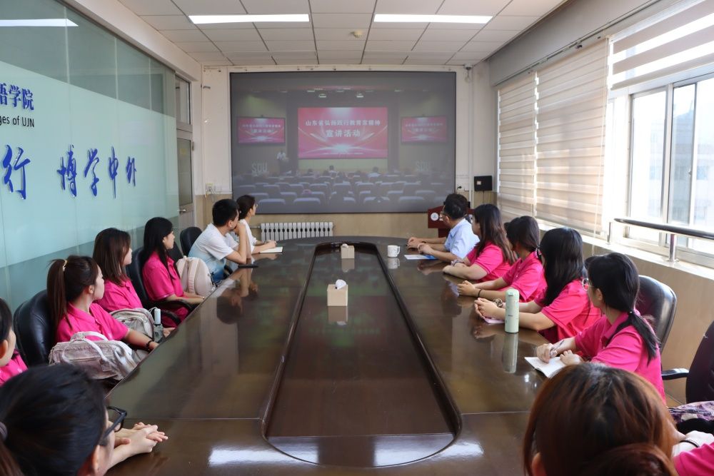 为深入贯彻落实党的二十大和二十届二中、三中全会精神,大力弘扬践行教育家精神,庆祝第40个教师节,9月4日上午,外国语学院组织师生参加“山东省弘扬教育家精神”宣讲活动。
