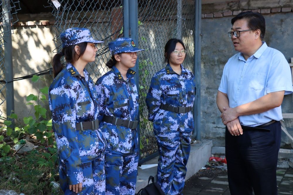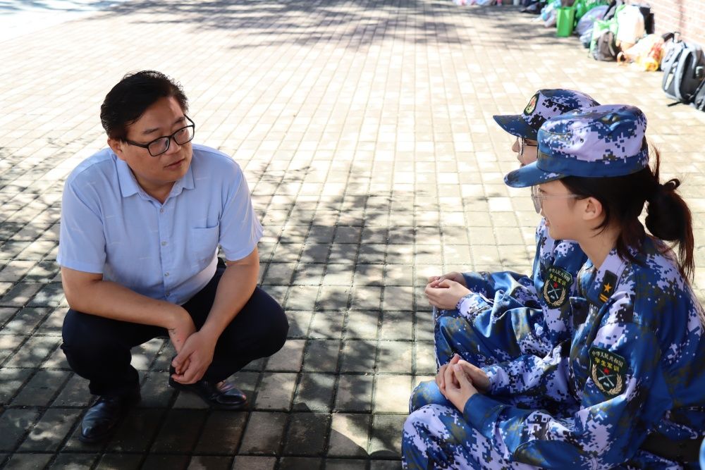 季竹君表示,军训是新生入学后的第一课,全体新生要克服困难,充分发挥吃苦耐劳、踏实肯干的精神,培养队伍的凝聚力、向心力,既要坚持高标准、严要求,确保高质量地完成军训任务,又要张弛有度、安全施训。在训练间隙,季竹君主动与学生们亲切沟通,详细询问了军训见习生的身体状况,并鼓励同学们要发扬不怕苦、不怕累的精神,在军训的过程中养成良好的行为习惯,磨砺意志、强健体魄。
