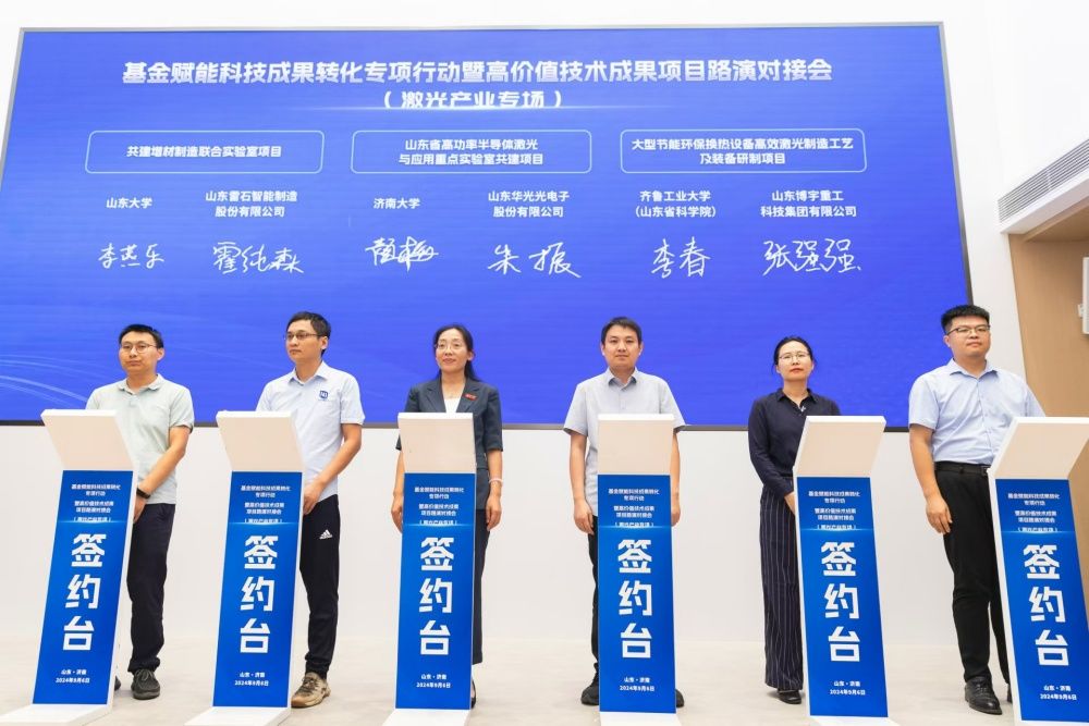 9月6日,基金赋能科技成果转化专项行动暨高价值技术成果项目路演对接会——激光产业专场在山东科技大市场T5楼二层路演大厅举办。山东省科技厅二级巡视员王宝立,济南市政府副秘书长李新春,市科技局党组书记、局长黄波。市科技局、部分驻济高校院所、激光产业重点企业、金融机构及区县(功能区)科技部门主要负责人参加活动,科技处、材料科学与工程学院、物理科学与技术学院相关负责人、教授参加了活动。