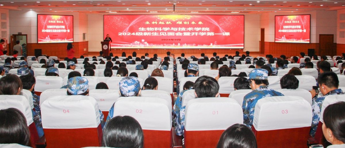 9月14日,生物科学与技术学院举行2024级新生见面会暨开学第一课活动。学院领导班子成员、校友代表、教师代表、辅导员、班主任,2024级本科生、研究生参加活动。活动由学院党委副书记、副院长武芳主持。