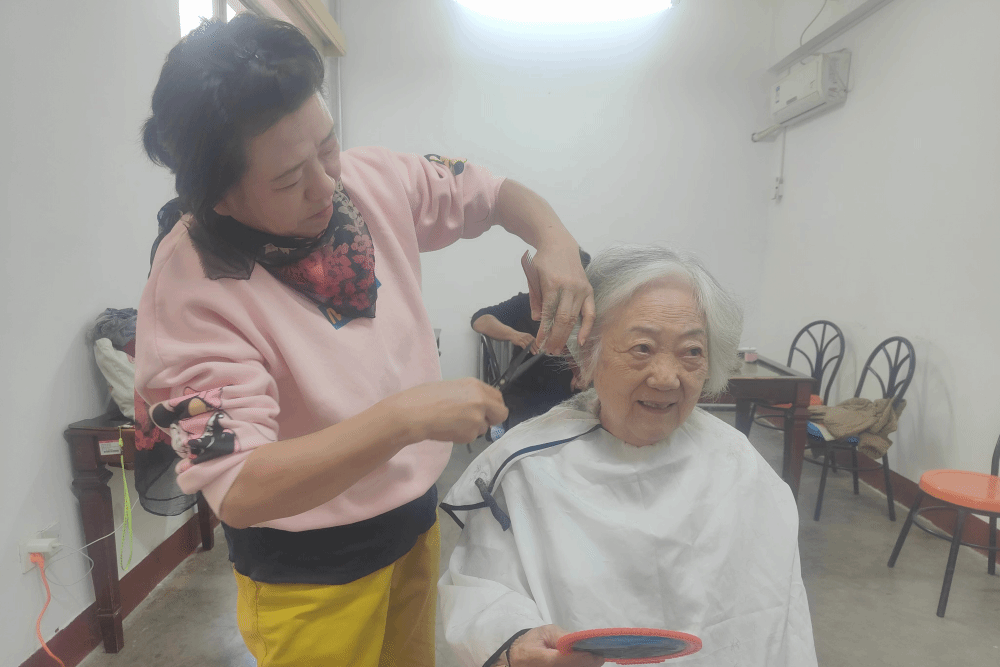 理发现场,理发师仔细询问老同志对于发型的要求,并根据其头型特点,为他们精心修剪发型。理发师娴熟地运用各项剪发工具,一边细心为老同志修剪头发,一边与他们唠着家常,现场氛围轻松愉快,耐心细致的服务也受到老同志们的一致好评。舜耕校区工作人员和志愿者亲自上阵,为老同志进行理发服务,受到老同志们的欢迎。