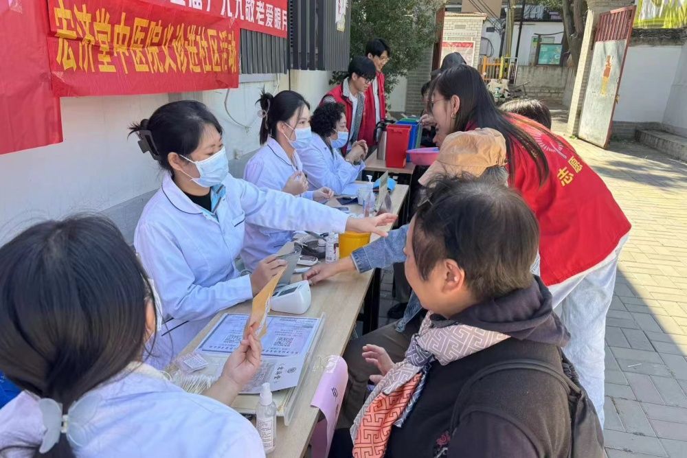在10月11日的健康义诊活动现场,志愿者们配合专业的医护人员,为社区居民提供了血压测量、血糖检测等基础健康检查服务。他们详细记录了老人们的健康状况,对于发现的潜在健康问题,志愿者们还积极引导老人前往正规医院进行进一步检查和治疗。