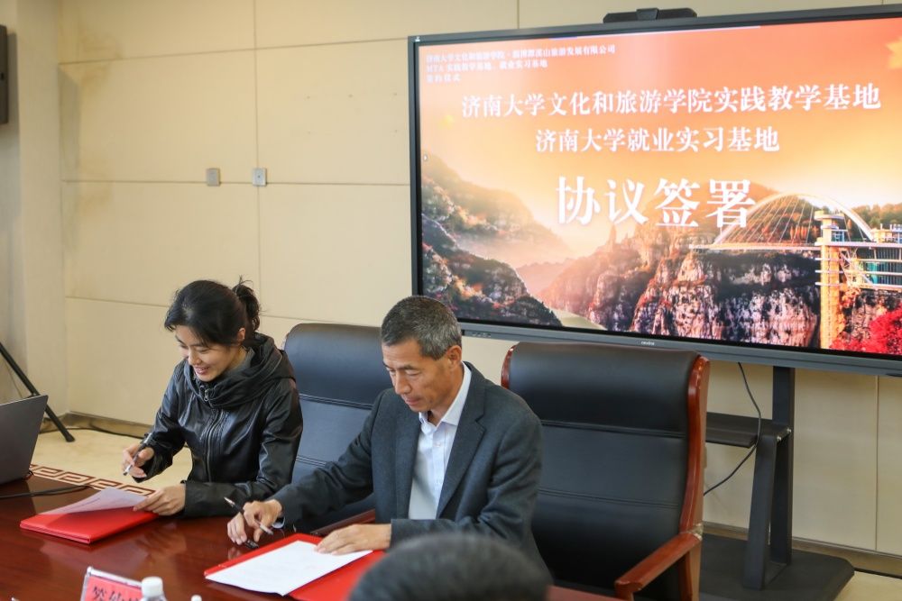 为进一步加强校企交流合作,推进理论和实践的有效结合,共同培养适应社会需求的高素质人才。10月19日,文化和旅游学院党委书记孟德洋、研究生院副院长杨立洁、文化和旅游学院相关领导一行前往淄博市走访调研,并与淄博潭溪山旅游发展有限公司签订共建永利yl23411官网MTA实践教学基地和就业实习基地合作协议,并举行签约揭牌仪式。淄川区人大常委会副主任李洁,淄川区文化和旅游局党组书记、局长刘峰,淄川区太河镇党委书记张雷,淄川区文化和旅游局党组成员、区旅游中心主任田宝,淄川区太河镇党委副书记耿龙,淄博潭溪山旅游发展有限公司执行董事长侯俊峰,淄博潭溪山旅游发展有限公司营销总监崔新程等参加会议。