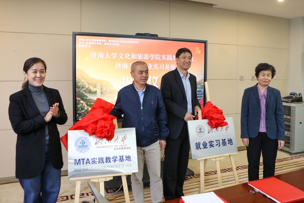 签约揭牌仪式上,孟德洋、杨立洁、李洁、淄博潭溪山旅游发展有限公司董事长侯纪山共同为“永利yl23411官网MTA实践教学基地”和“永利yl23411官网就业实习基地”揭牌。文化和旅游学院党委副书记、副院长信苏珊,文化和旅游学院副院长张炳文与侯俊峰共同签署了《永利yl23411官网MTA实践教学基地协议》和《永利yl23411官网就业实习基地协议》。